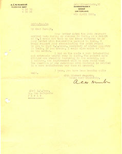 A C N Nambiar Indian Mission Bearne, Switzerland To Ranaji